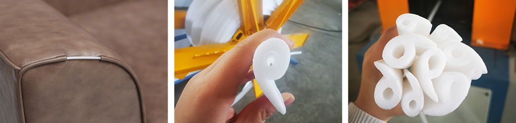 该生产线可以生产高弹力PE发泡材料,制品可用于家具沙发、床垫、箱包、门窗等包边条/造型条/滚边条/密封条,PE 材料具有高弹性,回弹力佳,是产品常用的发泡制品,随着人名生活水平的提高势必会逐渐取代常规的海绵制品,更好地提高人民的生活质量和水平.